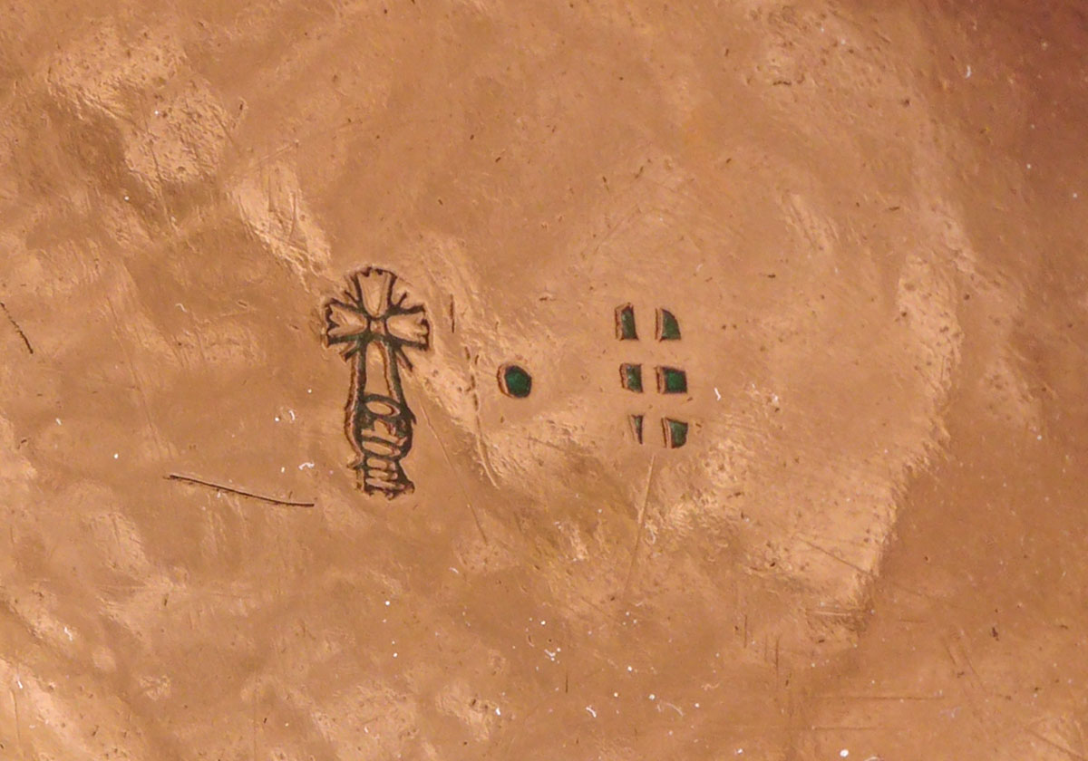 Stamped to the underside is the orb and cross “trademark” of Benham Froud, Coppersmiths, of London. This trademark came about as the firm made the replacement copper cross (weighing over 7 tonnes and still in place) in 1821, for St Paul’s Cathedral.
